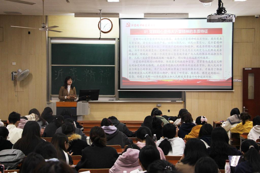 活动伊始,沂蒙精神宣讲团首先进行宣讲。团长李若圆和成员张筠妮分别从“沂蒙精神的本质特征”“感人至深的红色历史故事”和“新时代沂蒙精神的创造性转化和运用”三个层面展开,为在场的同学们生动地展现了沂蒙精神的孕育和发展历程。同学们在同宣讲者的热情互动中,增进了对于沂蒙精神的了解,坚定了传承和践行沂蒙精神的决心。