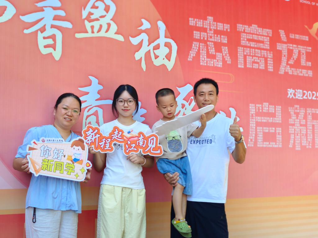 精心筹备,迎新环节展心意。学院高度重视迎新工作,提前周密部署,精心策划每一个迎新环节,全力确保新生报到安全、高效、有序进行。人文学院北门主题喷绘上,由全体新生姓名组成的“志高远,启新程”字样,殷切期盼同学们“立大志、明大德、成大才、担大任”,努力成为堪当民族复兴重任的时代新人。以人文之礼,载初心相迎。专属报到数字,定制入学礼包;融江南大学于方寸之间,依托专业特色设计专属礼物,这份礼物,是人文精神的传递,更是大学旅程的温暖序章。“书香盈袖”活动体验区,执扇绘心,落墨传情”,新生们亲手参与漆扇制作、团扇绘制与书法创作,在一笔一画、一染一绘之间,感受传统文化的魅力与人文底蕴的哲思。甲骨文解谜游戏,以甲骨为舟,载千年文脉;与“江南印记”透卡合影,用脚步丈量校园,以心灵感知人文。在时光邮筒中给未来的自己寄一封信,开启大学新旅程,一笔一画,写下的是此刻的梦想与期待,封存的是青春最珍贵的记忆。