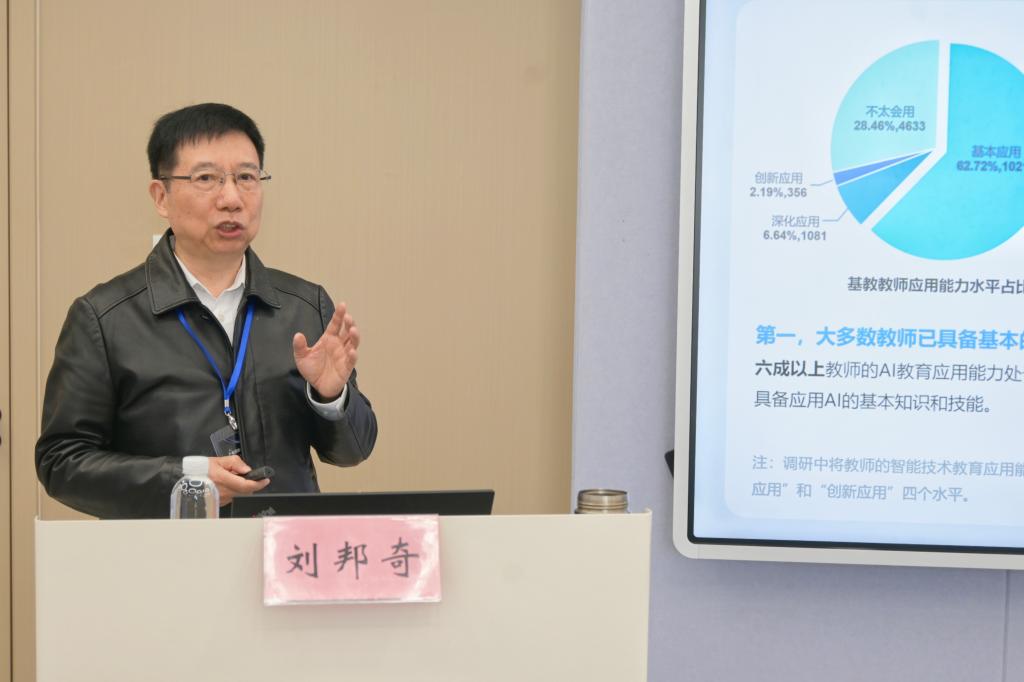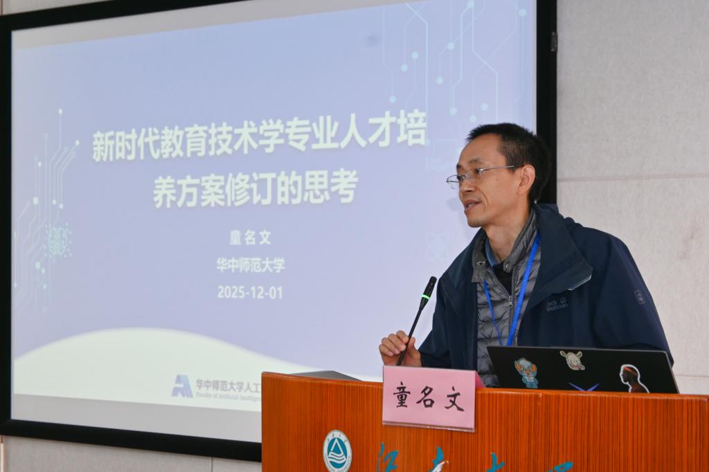 在特邀报告环节,刘邦奇以《人工智能赋能教师发展》为题,系统阐述了AI赋能教师队伍的政策脉络、实践场景与挑战。马宁以《智能时代教育技术学科建设——来自北师大的几点思考》为题,分享了北京师范大学教育技术学科“顶天立地”的发展与实践。陈明选以《数智化进程中教育技术学人才培养体系的时代重构》为题,深入剖析了专业当前面临的现实困境,提出转型关键在于面向未来、因校制宜,进行以素养为导向、产教研深度融合的体系重构。