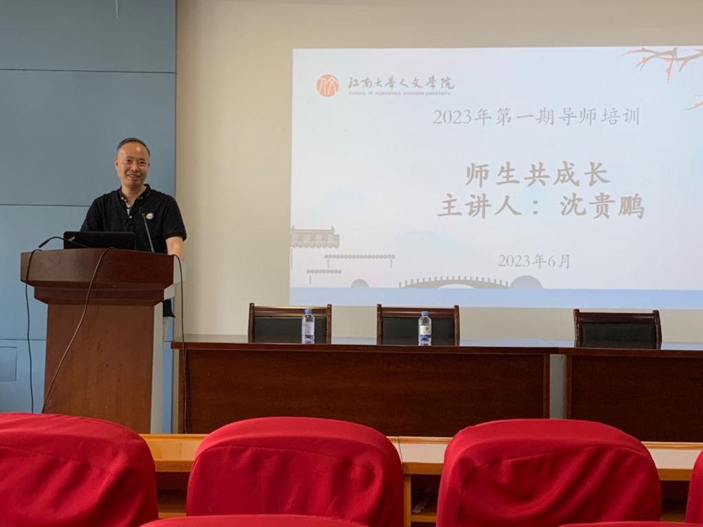 为进一步加强研究生导师队伍建设,提高研究生培养质量,人文学院于2023年6月21日组织开展了2023年度第一期导师培训会。会议邀请沈贵鹏教授以“师生共成长”为主题进行专题讲座,学院主要领导及全体研究生导师参加会议,会议由人文学院副院长(主持工作)伍红林教授主持。