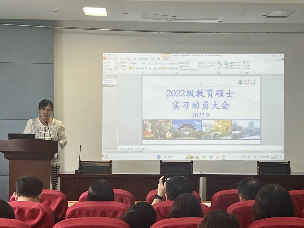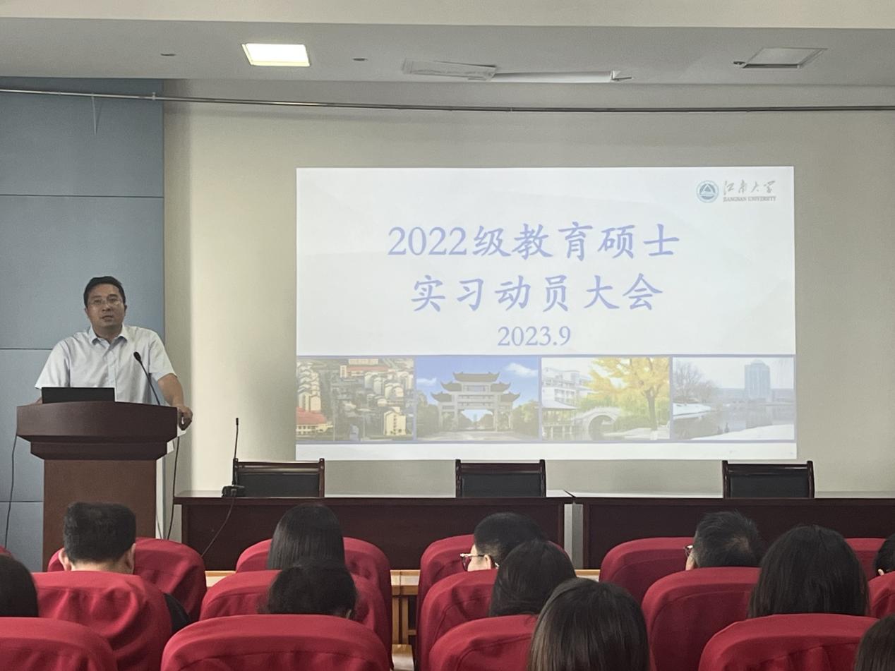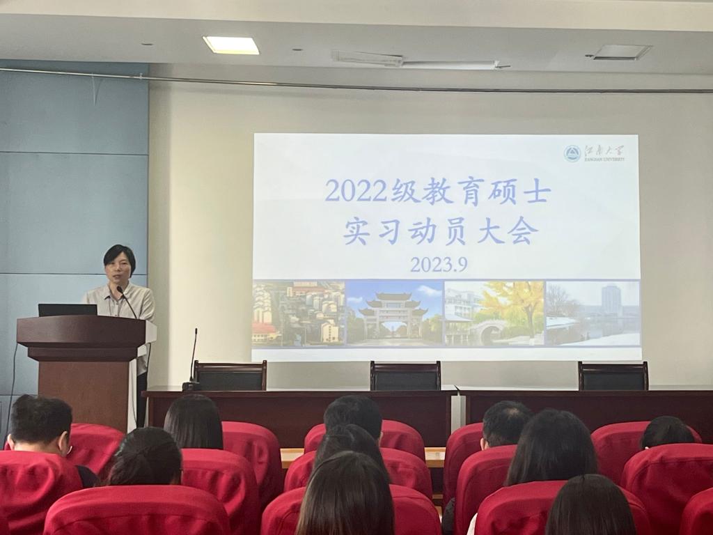 最后,于书娟副院长进行总结发言,她强调同学们在实习过程中,应在外维护和展示良好的江南大学形象,注意自身一言一行,既要完成实习任务,更要做好为人,从各个方面严格要求自己。并预祝2022级教育专硕全体研究生同学实习顺利,满载而归!