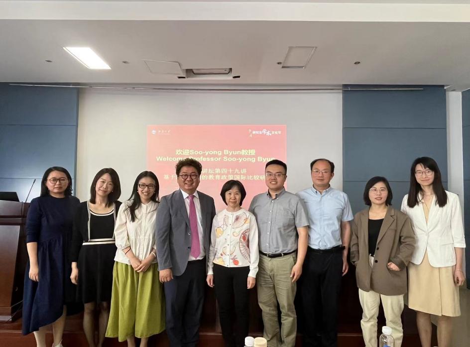 2024年5月17日上午,由江南大学研究生院主办、人文学院承办的江南讲坛第四十九讲在田家炳楼209报告厅顺利举行,讲座邀请到宾夕法尼亚大学教育理论与政策、人口学与亚洲研究的联席教授,梨花女子大学教育学系客座教授Soo-yong Byun,他的报告题目为“基于跨国数据的教育政策国际比较研究”。本场讲座由江南大学人文学院院长助理屈廖健主持,人文学院党委书记姚剑英、教育系党支部书记王文礼及人文学院、外国语学院相关研究领域的教师及研究生参加了讲座。