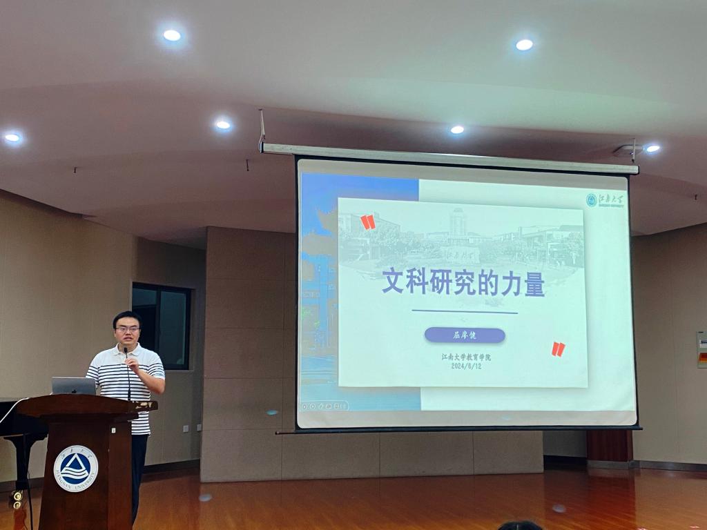 2024年6月12日,江南大学人文学院第十八届“湖畔杏坛”研究生学术文化节在北区大学生活动中心音乐厅顺利举行。江南大学党委研究生工作部副部长陈周受邀讲话,江南大学人文学院院长伍红林、副院长于书娟分别担任主持。人文学院屈廖健教授、马克教授、王靖教授和黄艳萍副教授做主题报告。此外,人文学院副书记李萍、副院长张春梅,研究生辅导员邵祥岚、研究生秘书徐静雯和人文学院300多位研究生参加此次活动。