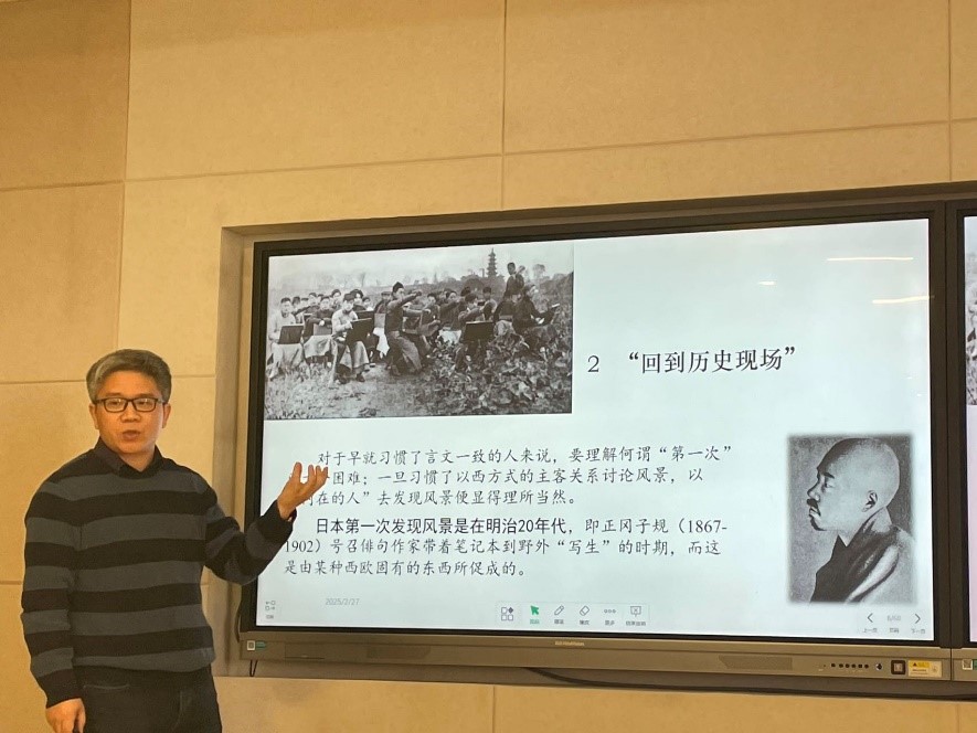 2025年2月27日下午,由江南大学人文学院主办的讲座“研究生学习中的文学与理论——以风景批评为例”在江南大学田家炳楼517报告厅顺利举行。华东师范大学汤拥华教授受邀主讲,为大家带来了一场关于文学与理论的学术盛宴。讲座由江南大学人文学院张春梅教授主持,人文学院顾梅珑、梁博宇、何哲涵等老师以及百余名学生到场聆听。