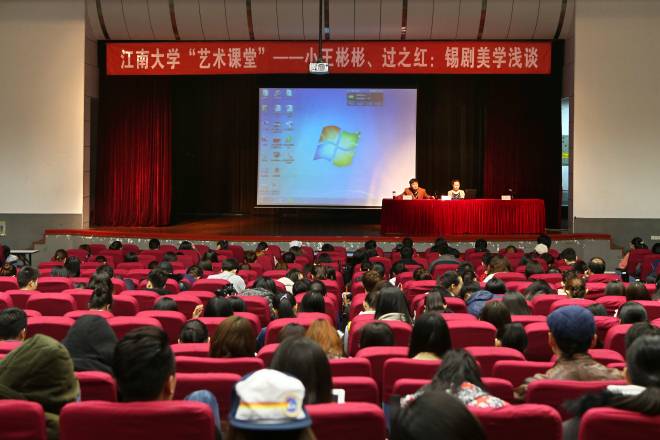 4月6日下午,江南大学“艺术课堂”第三讲在南区大学生活动中心拉开帷幕。本次课堂以“锡剧美学浅谈”为主题,国家一级演员、无锡市戏剧家协会主席小王彬彬携江苏省剧协常务理事、市级“非遗”传承人过之红为江南学子奉上了一场别开生面的课程。