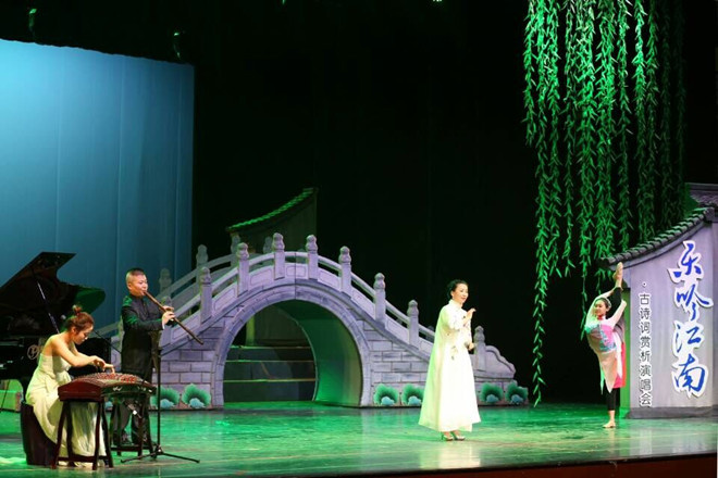 2017年5月16日19点,艺术课堂---“乐吟江南·古诗词赏析音乐会”在江南大学文浩馆隆重举行。本次艺术课堂由江南大学党委宣传部、江南大学学生工作处、江南大学团委、国家大学生素质教育基地以及江南大学人文学院主办,无锡市音乐家协会、江南大学人文学院音乐系承办。