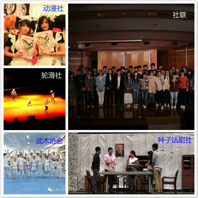 目前艺术类高水平社团有:江南音乐创演中心、江南大学合唱团、“山水清音”民乐团以及舞蹈青年实验舞团等四个主要表演、创作、演出团队。均由专职教师指导,定期进行汇报演出和承担各个级别的专业比赛。