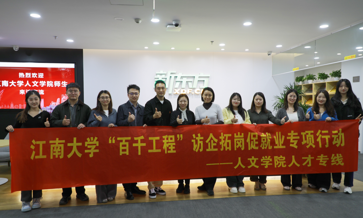为扎实做好“百千工程”访企拓岗促就业专项行动,助力学生高质量充分就业,11月7日,人文学院党委书记王晖,党委副书记、副院长徐璐,分团委书记邓昌海,教育技术系教师刘文辉,辅导员谢铅玉、王金星及学生代表一行赴杭州学而思培训学校与浙江新东方学校开展访企拓岗,并分别与学而思华东区域政府公关负责人屈浩然、校园招聘经理赵小乐,新东方浙江公司招聘经理蒋川、校招联系人凌君华等展开座谈交流。