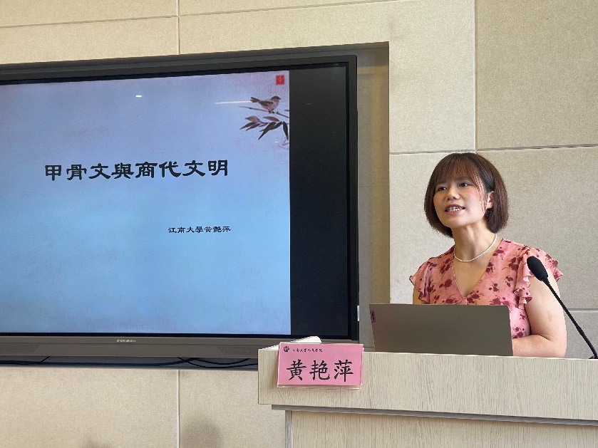 首先,中文系黄艳萍以《甲骨文与商代文明》为题,探讨了甲骨文的发现、研究及其对商代文明的重要意义。她指出,甲骨文作为中国最早的系统文字,不仅记录了商代的社会生活、宗教信仰和政治制度,还为现代学者提供了研究古代文明的一手资料。黄教授详细介绍了甲骨文的发掘历程、刻写工具及内容分类,并强调了其在汉字演变和历史文化研究中的独特价值。她通过生动的实例,展示了甲骨文如何成为连接现代与古代的桥梁,激发了在场师生对古文字学的浓厚兴趣。