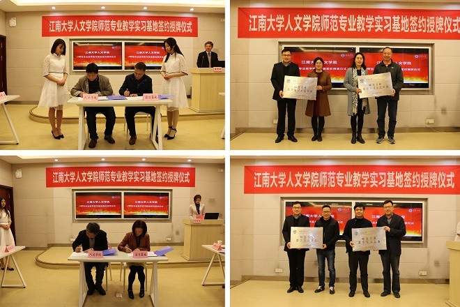 田良臣院长、蔡爱国副院长分别与中小学领导签订了教学实习基地协议书,顾志国副处长与沈贵鹏书记、惠恭健副院长等为实习基地授牌。