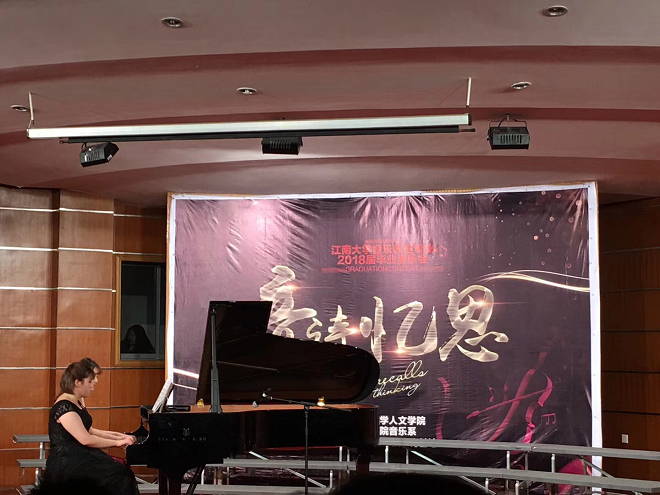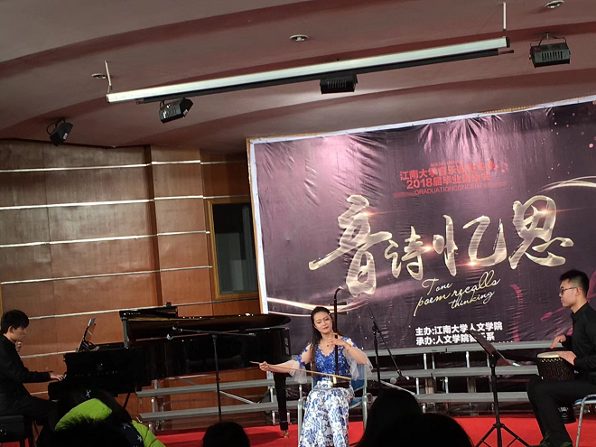 1月17日晚七点,江南大学人文学院音乐系2014级“音诗忆思”毕业音乐会在北区大学生活动中心音乐厅隆重举行。人文学院田良臣院长、符姗姗副院长、吴宝锁副书记副院长;无锡音协吕仁仲主席、胡长林副主席、李凯副主席;无锡教科院音乐教研员张莲主任等各部门单位领导亲临现场。