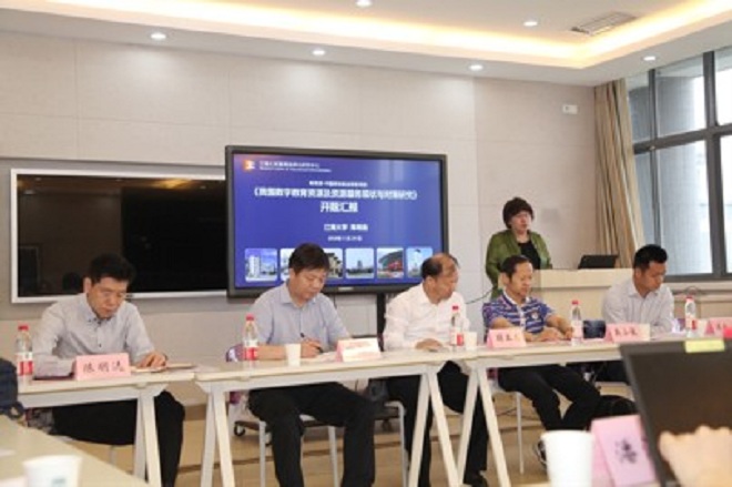 2018年5月20日上午,教育信息化研究中心在人文学院517室举行了由陈明选教授主持的教育部-中国移动基金项目《我国数字教育资源及资源服务现状与对策研究》开题论证会。这是教育部对教育信息化研究领域资助力度最大的项目,也是近年来人文学院在承担部级重大项目上的突破。中央电教馆馆长王珠珠、教育部科技司信息化处副处长任昌山、教育部科技司信息化处副主任潘润恺、中央电教馆职业教育教学资源部主任赵林、教育部教育技术学教学指导委员会秘书长、华中师大教育信息学院副院长杨九民教授等出席。江南大学副校长顾正彪教授,科研院院长吴小俊教授,社会科学处、人文学院的领导,教育信息化研究中心的教师、研究生等四十余人出席。论证会由江南大学科研院院长吴小俊教授主持,项目负责人陈明选教授进行了开题汇报。
