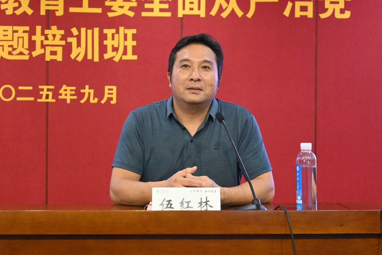 伍红林在致辞中向参训人员表示欢迎,并简要介绍了江南大学人文学院、教育学院在学科建设、师资队伍、科研成就及社会服务等方面的突出成果和优势特色,表示此次将以与昆山市委教育工委合作举办培训班为起点,充分发挥学校学院的资源优势,为昆山教育干部成长提供有力支持。