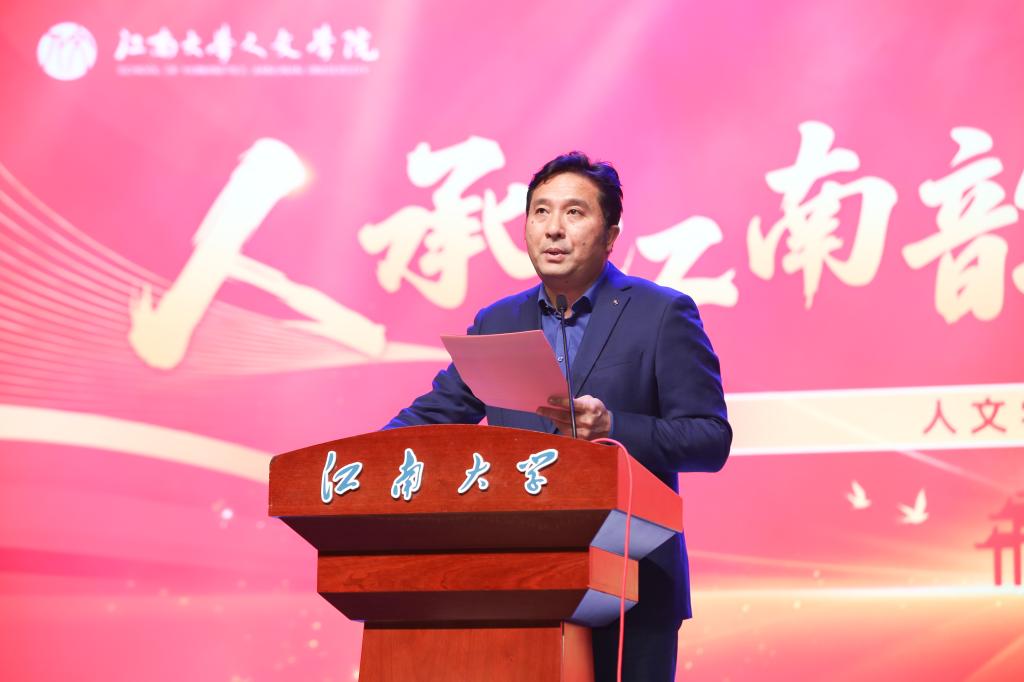 人文学院伍红林院长发表致辞,回顾了过去一年学院在党建引领、人才培养、科研创新和社会服务等方面取得的丰硕成果。2025年,学院以“党建红”引领“人文韵”,高校原创文化精品,基层党组织建设获省级以上表彰;以“人文力”赋能“育人路”,多支实践团队和项目荣获国家级荣誉,“挑战杯”竞赛实现历史突破;以“学术芯”驱动“创新源”,科研项目与高水平成果稳步推进,学科交叉与学术交流持续深化;以“服务情”联结“社会心”,积极拓展国际合作、优化师生服务,在开放融合中彰显人文温度。伍院长向全体新生表示热烈欢迎,向获奖师生致以衷心祝贺,并展望2026年,学院将继续围绕立德树人根本任务,深化“党建+学科攻坚”,拓展“党建+美育”路径,与师生携手共创人文学院更加灿烂的明天。