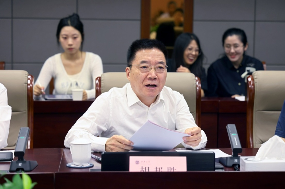行政楼B305顺利召开。中国作家协会党组成员、书记处书记胡邦胜,江苏省作家协会党组书记郑焱,无锡市委常委、宣传部长李秋峰,江苏省作家协会副主席、省网络作协主席陈彬,江苏省作协联络部主任吴正峻,无锡市文联党组书记、主席杨建,无锡市文联党组成员、副主席周军,无锡市委宣传部文艺处处长李跃光一行到校调研交流。校党委书记朱庆葆、党委副书记符惠明、党委宣传部部长李佳敏、社会科学处处长王建华,水果派