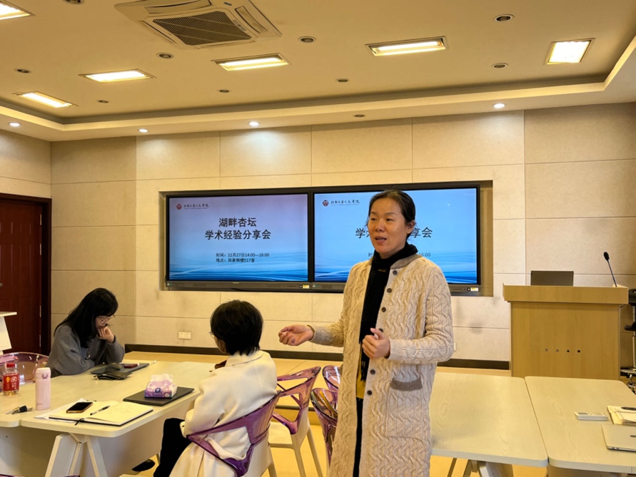 2024年11月27日下午,由江南大学人文学院主办的第二期“湖畔杏坛·学术经验分享会”在田家炳楼517室举行。本次活动邀请了人文学院中文系许婷副教授、教育技术系王靖教授进行学术经验分享,张春梅副院长进行点评指导。本次活动由教育技术系蔡慧英副教授主持。