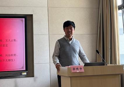 讲师梁博宇主讲,他以《文学史研究的时间与空间——以苏轼在密州的老境书写为例》为题,为听众打开了一扇文学研究的新视窗。他从时空双重视角出发,重新审视了文学史研究的维度,并且以苏轼在密州的创作为案例,生动展示了地理空间对作家精神世界和审美情趣的深刻影响。梁博士指出,只有兼顾时间与空间的双重分析,才能更全面地还原文学史场景,理解作品的文化意义。