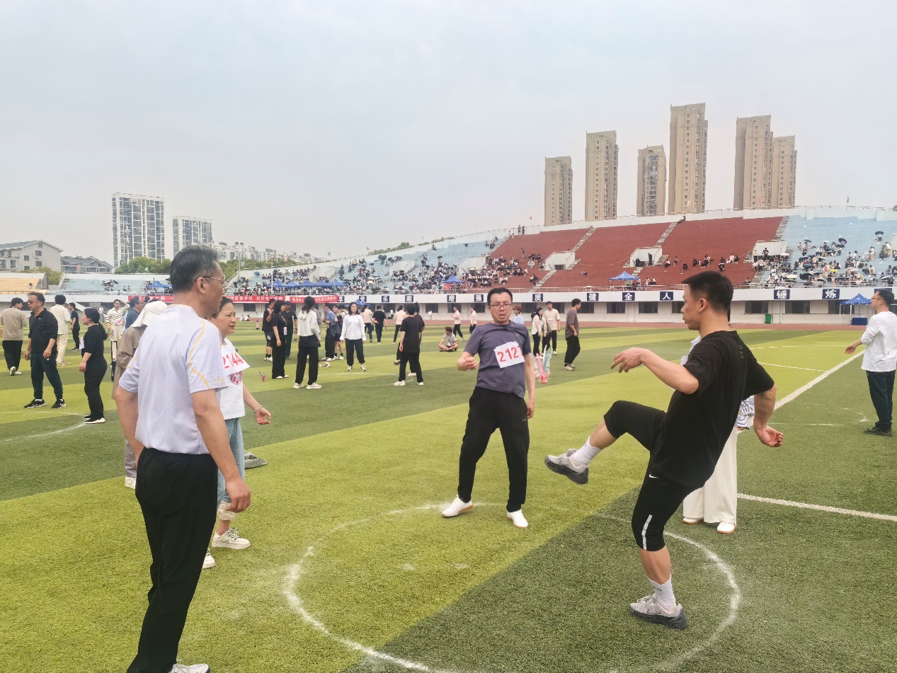 在4月11日举办的水果派 第二十届运动会上,水果派 由27名老师组成的教工代表队在以党委书记王晖为领队、分工会主席任忠民为教练的带领下,分别参加了八段锦表演和男女混合毛毛虫竞速、男子组足球定点射门、男子组实心球、男女混合花毽围踢、男女混合团队跳绳、男子组篮球三分球、男子乙组立定跳远、男女混合同心鼓等八项竞赛项目,取得男子组足球定点射门、男子组实心球第四名,男子乙组立定跳远第七名的成绩,展示了水果派 教工良好的精神风貌,增强了大家的健身意识、团队意识和公平竞争意识。