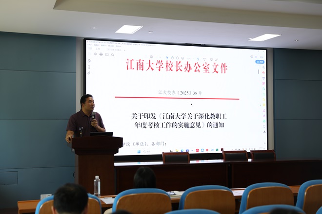 学院党委书记王晖作总结讲话,祝贺大会圆满完成既定的各项议程,感谢代表们的辛勤付出和认真履职。简要回顾了2024年学院、分工会工作取得的成绩和学院修订《水果派 年度考核与绩效分配实施办法》的初衷和过程。希望各位代表和全院教职工以师德师风为根基、争做“四有”好老师,以考核指标为牵引、打响学科特色攻坚战,以协同机制为纽带、汇聚创新发展动能,为共同营造和谐、奋进、积极向上的工作氛围、开创学院事业发展的新局面,为奋进江南做出应有的贡献。