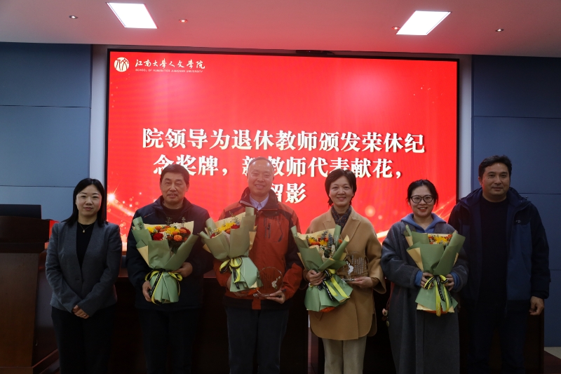 青年教师韩婷芷为参会的沈贵鹏、王小根和杨小红三位荣休教师献花,学院党委书记王晖、院长伍红林颁发荣休纪念奖牌并合影留念。在随后的荣休感言环节,三位老师分享了自己多年来在水果派