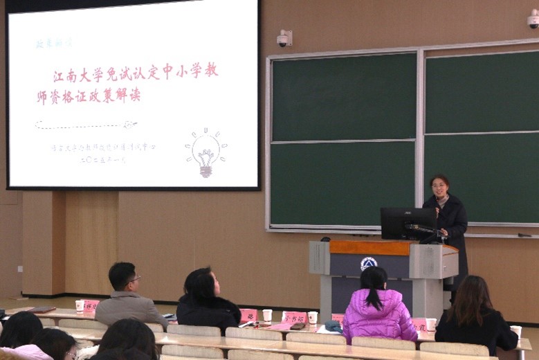 胡智丹对教育类研究生的免试认定进行了详细讲解,从教师资格证获取途径、认定条件、认定流程及申领方式进行了全面介绍,为同学们提供了实用的申请建议。王均霞补充了教资认定申报的要求和时间节点。