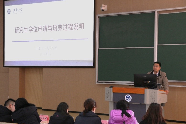 副书记徐璐、院长助理田贤鹏、教师技能培训中心主任胡智丹;辅导员邵祥岚、邓昌海和全体硕士研究生以及首批国优计划二次遴选在读研究生参加本次会议。会议由研究生秘书徐静雯主持。