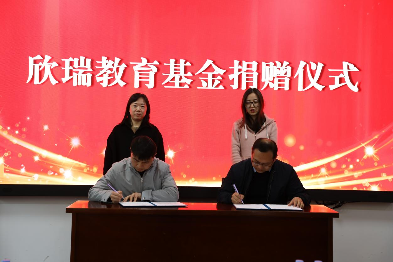 在捐赠签约环节,江苏欣瑞教育咨询有限公司总经理邓海兵与任签署捐赠协议,任增亮向捐赠单位颁发捐赠证书,江苏欣瑞教育咨询有限公司无锡分校校长刘雅婷代表公司向学院捐赠,王晖代表学院接受捐赠。