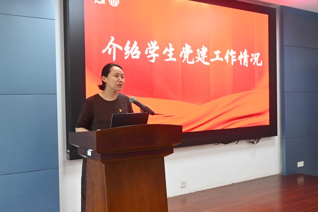 徐璐以实际案例和数据与新党员深入交流,并从突出思想引领、突出载体创新、突出知行合一三个方面详细介绍一年以来学院学生党建工作情况,指出学院学生党建紧扣立德树人根本任务,在强化思想引领上聚心,在创新党建载体上聚智,在引导实干发展上聚力,有效推动党建与思政工作深度融合,不断提升党组织的政治引领力、组织驱动力和育人影响力,希望新党员在学院党委搭建的各类培训培养的平台中磨砺自己,汲取力量,铭记入党初心、践行入党誓词,充分发挥先锋模范作用。