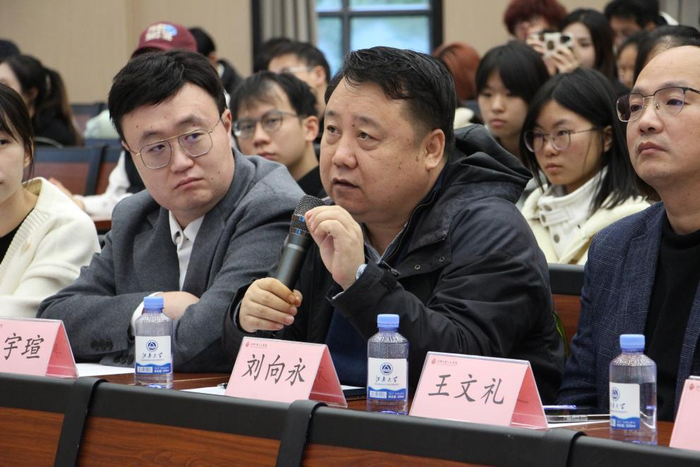答辩环节结束后,王文礼老师作总结发言。他高度肯定了各位候选人的卓越表现,称赞他们全面展现了人文学子积极奋发、追求卓越的精神风貌,并勉励全体同学以榜样为引领,以热忱为土壤,以才智为养分,在青春的赛道上奋力奔跑,为实现民族复兴的伟大梦想贡献智慧与力量。