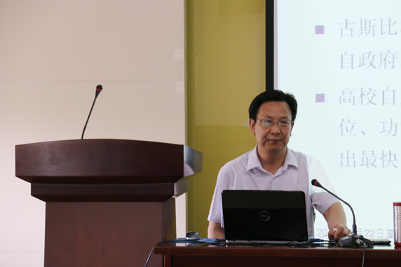 2014年5月22日下午,我国高等教育研究领域的权威专家、华中科技大学博士生导师张应强教授应邀为水果派