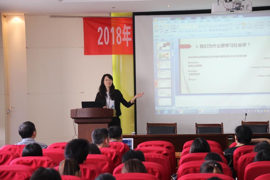 讲座伊始,田院长代表学院对刘鹏教授和殷越博士的到来表示了热烈欢迎。随后,殷越博士围绕“教育社会学视角分析名校毕业生如何另辟蹊径走进农村教育”进行专题讲座。殷越博士以自身海外留学经历引出社会学,向在座师生解释了何为社会学以及何为身边的社会学。接下来殷越博士与大家共同解读了布迪厄相关理论、探讨研读理论与实践运用之间关系以及对名校学生走进乡村教育的看法。