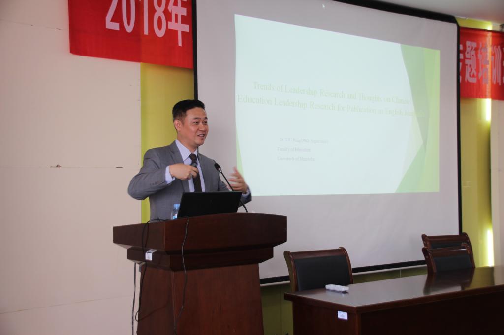 刘鹏教授则围绕“近期领导力研究的趋势以及对在英文期刊上发表中国教育领导力研究的几点思考”开展讲座。首先,刘教授向我们介绍了何为领导力,以及国内与国际有关领导力的不同看法,并向大家讲解了变革式领导力、校长领导力、原生领导力等多种领导力概念。最后,刘教授着重讲解了国内学者与国际学者对于领导力的研究、期刊发表情况以及研究领导力所推荐的几种研究方法。