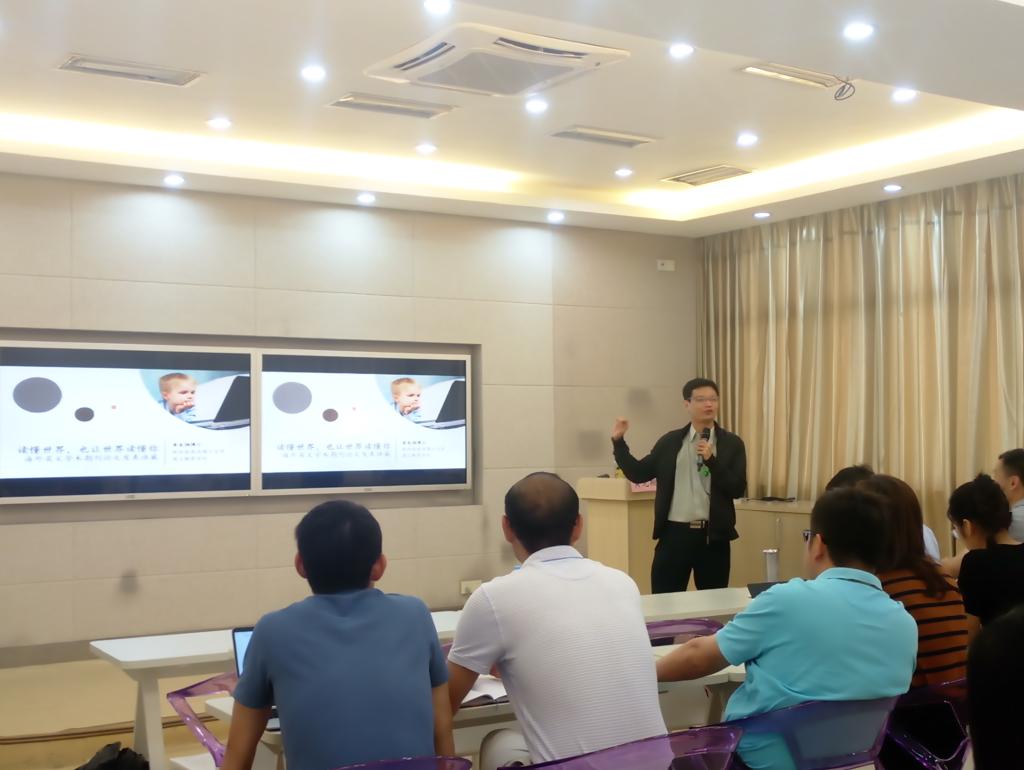 首先,陈院长致辞,对黄博士的研究背景进行介绍,对与会嘉宾的到来表示了热烈欢迎。随后,黄博士向师生们介绍了教育技术学者经常发表的SSCI教育类期刊,阐明了产出一篇优秀论文的先天与后天因素。紧接着,黄博士介绍了一般学术论文的典型结构,从主题的选择、期刊的选择方面向水果派