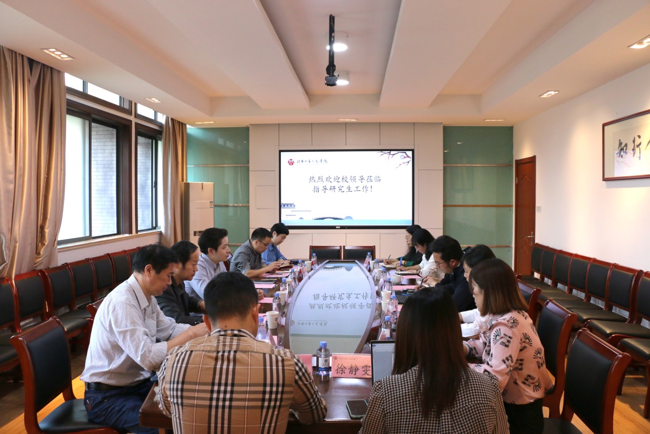 党委书记姚剑英,副院长(主持工作)伍红林,党委副书记、副院长李萍,副院长于书娟、王芳、研究生秘书、研究生辅导员参与座谈。会议由吴小俊主持。
