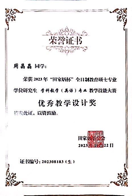 学科教学(英语)周晶晶、卢晓君获奖证书