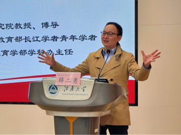 2024年11月20日上午,由江南大学党委研究生工作部、研究生院主办、人文学院承办的江南讲坛校庆专场第八十一讲在1C109顺举行。北京师范大学京师特聘教授、中国教育政策研究院教授、博导薛二勇教授受邀主讲“教育强国建设的战略布局与推进路径”。讲座由江南大学人文学院副院长于书娟教授主持,王志军、王文礼教授以及百余名学生到场聆听。