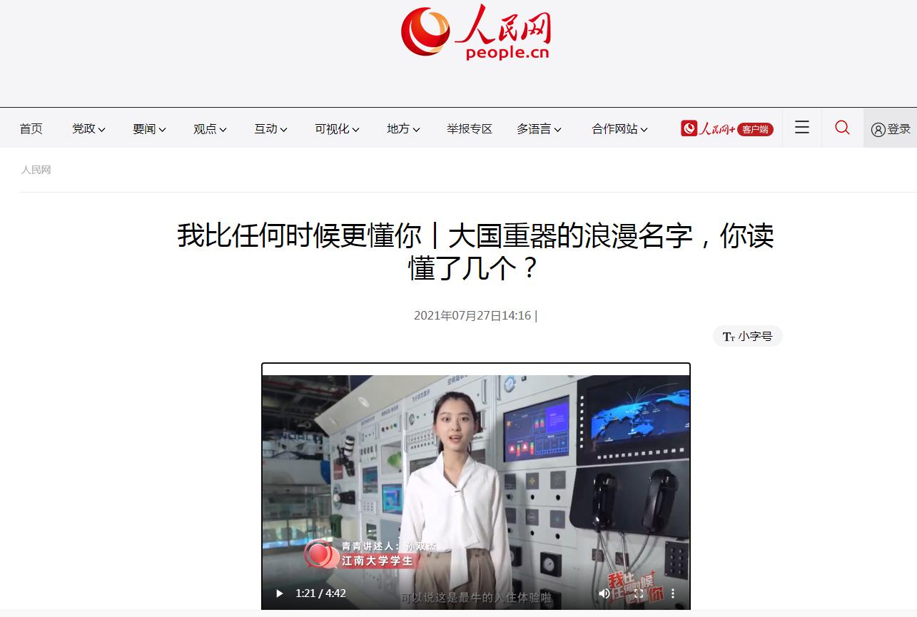 2019级汉语言文学专业孙双杰同学担任讲述人的“我比任何时候更懂你 ”系列短视频第3集《大国重器的浪漫名字,你读懂了几个?》在各大新媒体平台推介播出,引起火热关注,视频内容受到人民网等主流媒体报道。