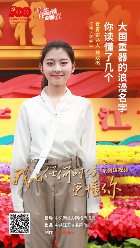 在校党委宣传部指导下,广泛宣传,积极动员有相关特长的同学参加“青年讲述人团队”的报名,协助完成了“青年讲述人”的选拔和推荐工作。同时,从学院融媒体中心抽调拍摄骨干力量与现代快报协助完成相关内容的拍摄。人文学子孙双杰作为第3集的青春讲述人,深刻感受到大国重器的“ 硬核实力” 。“ 这些大国重器让人骄傲,让人自豪,它们彰显着中国力量、中国精神。” 孙双杰说,这是国家实力不断提升的最佳写照。作为一名“00后”大学生,在满心自豪的同时,更应该向背后的工程师、科学家们道一声 “辛苦了!”
